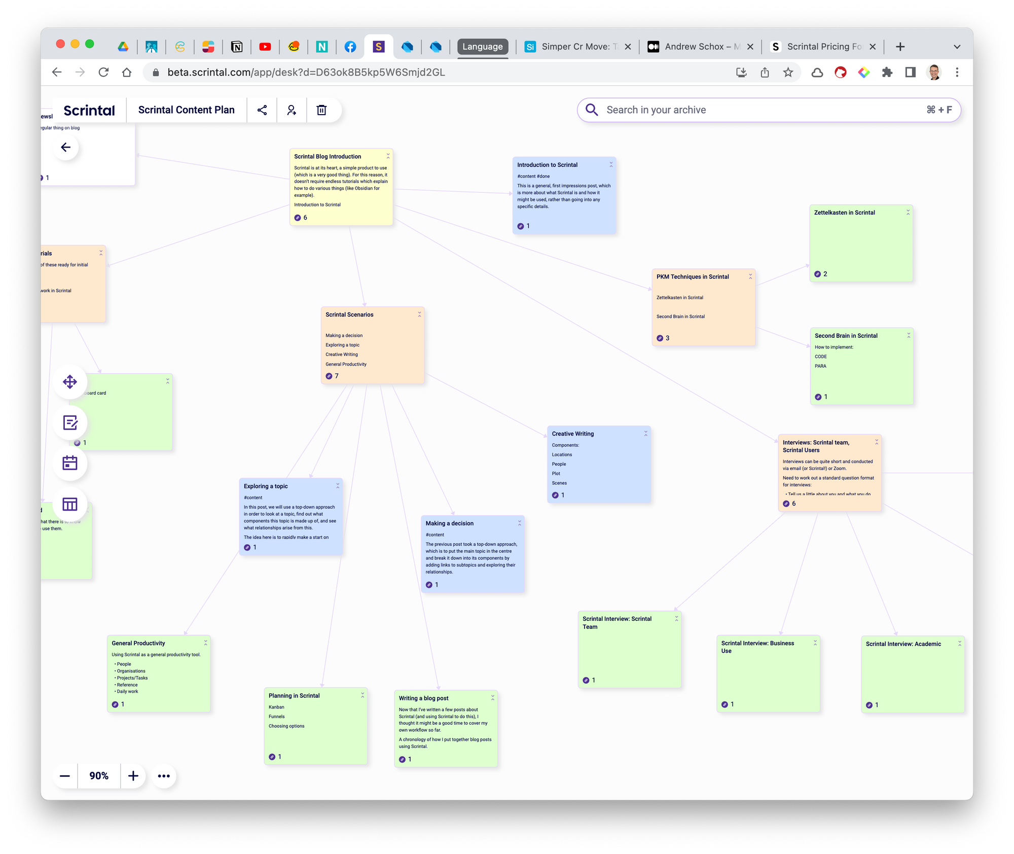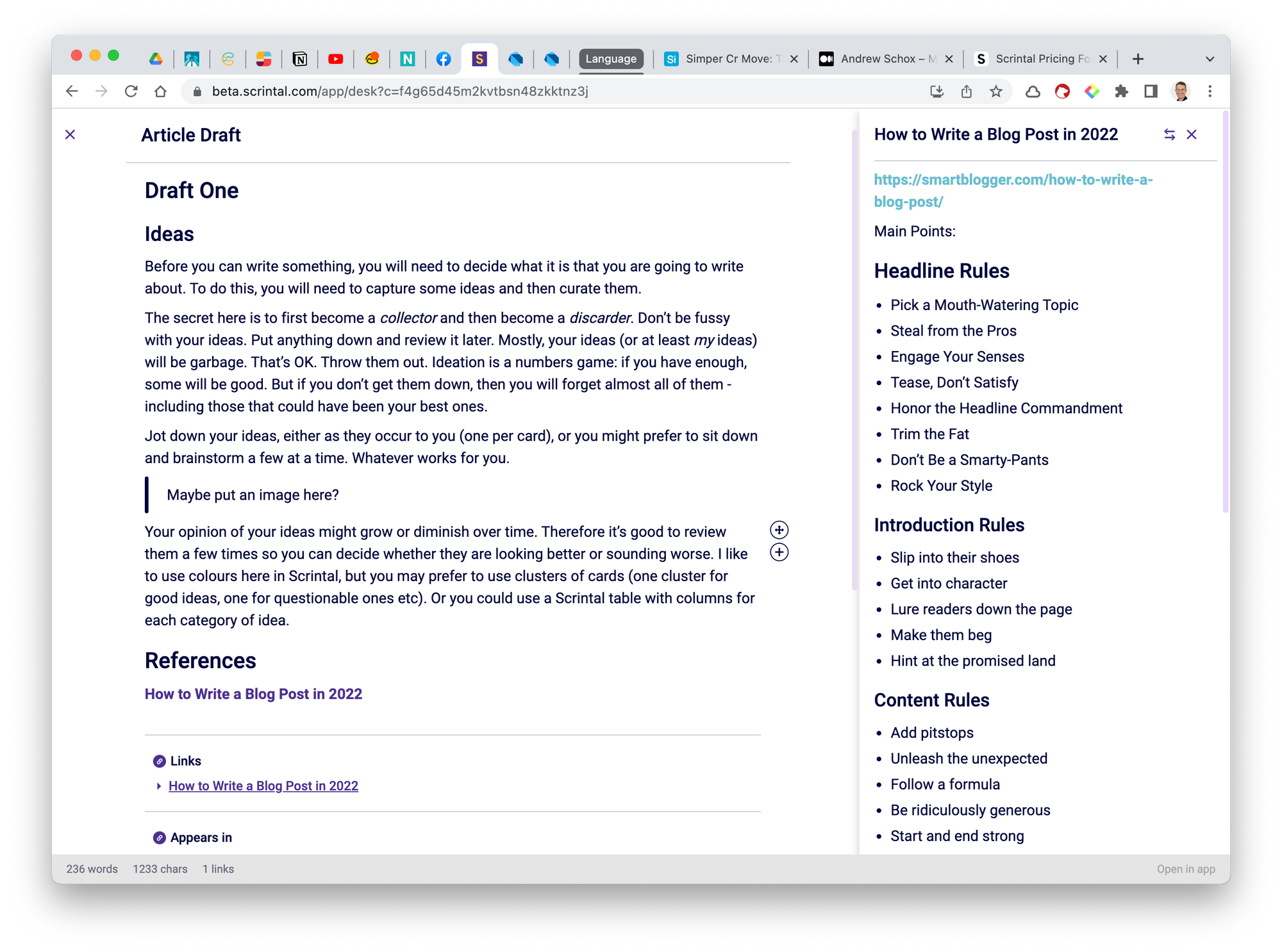 A workflow for writing blog posts using Scrintal